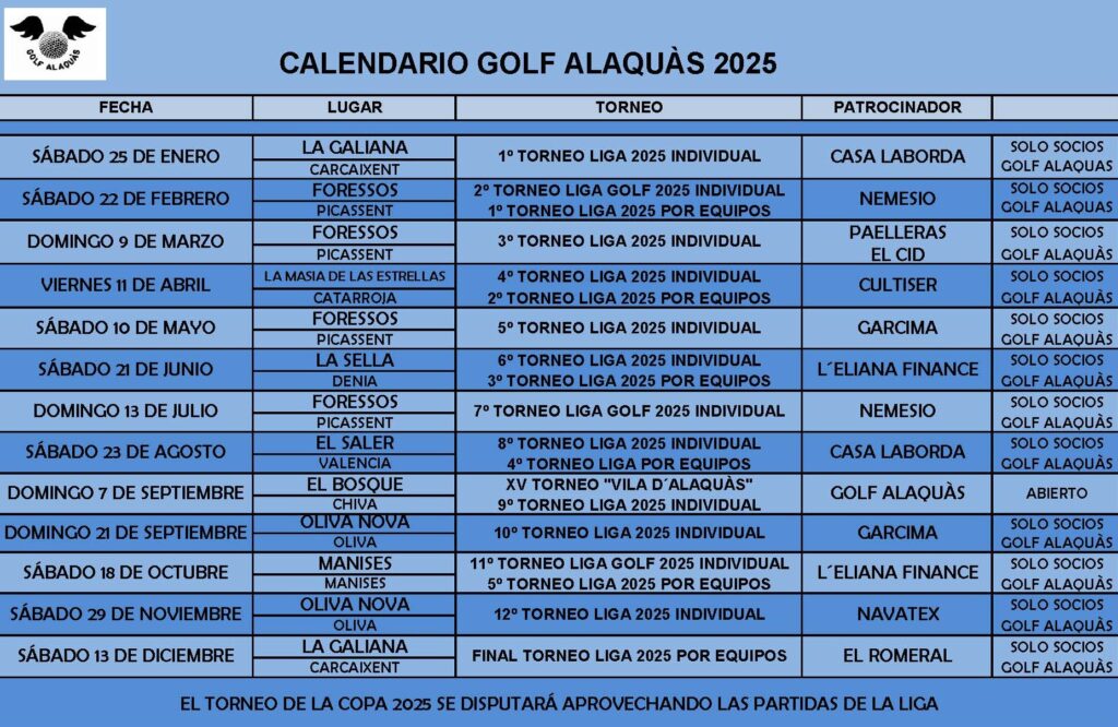 Somos un grupo de aficionados al golf que se reúne en la localidad de Alaquàs para jugar y charlar sobre este deporte que tanto nos gusta y que por el momento nos ha llevado a la realización del Torneo de Golf "Vila d'Alaquàs" pero que no sabemos hasta donde podemos llegar.