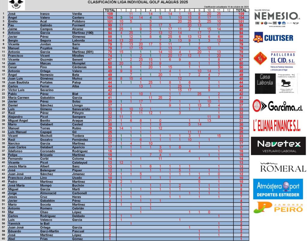 CLASIFICACIONES 11º TORNEO INDIVIDUAL Y 5º TORNEO POR EQUIPOS GOLF ALAQUÀS 2025