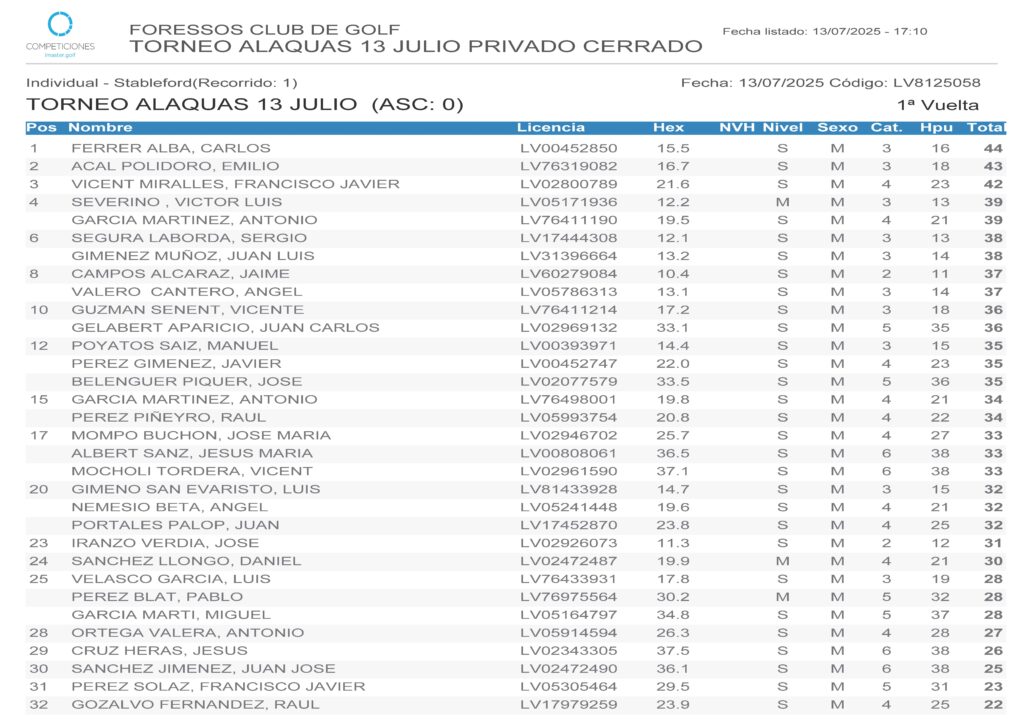 CLASIFICACIONES LIGA INDIVIDUAL 2025