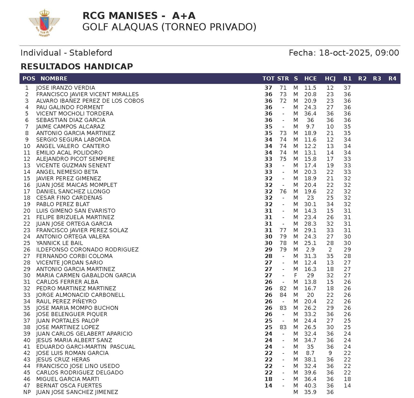 CLASIFICACIONES LIGA INDIVIDUAL 2025